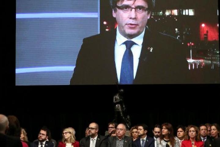 Puigdemont ha intervenido a través de videoconferencia desde Bélgica en el acto en el Salón Sant Jordi del Palau de la Generalitat, presidido por Quim Torra, para presentar el Consejo por la República, organismo que lidera el expresidente catalán junto con el exconseller huido Antoni Comín.