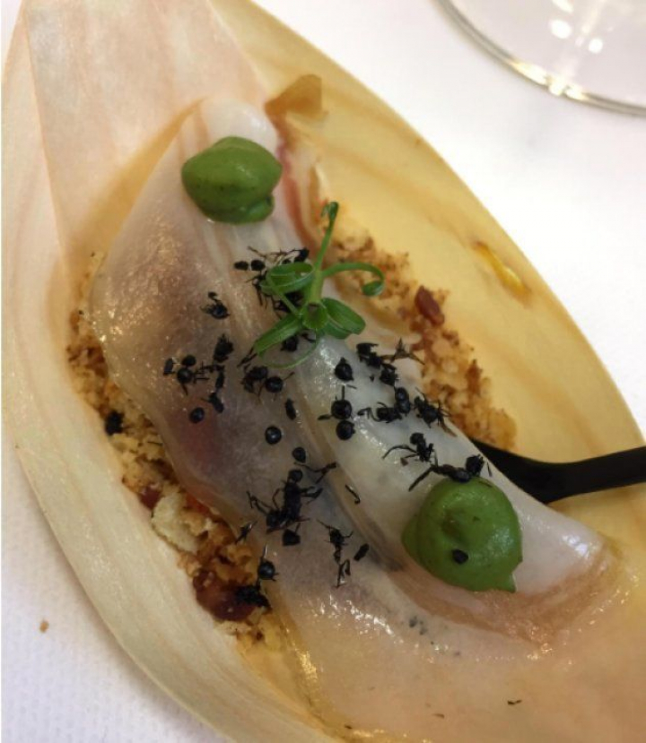 La cosa se fue poniendo turbia a cada plato. El siguiente, migas con hormigas. Que estaban ahí posadas sobre un trozo de panceta, como si acabase de levantar una piedra y me fuese a llevar a la boca lo que hay debajo. Crujían. Mal asunto. 'Bueno, piensa que son las migas', me dije. Una leche. Y trago de vino blanco para digerir.