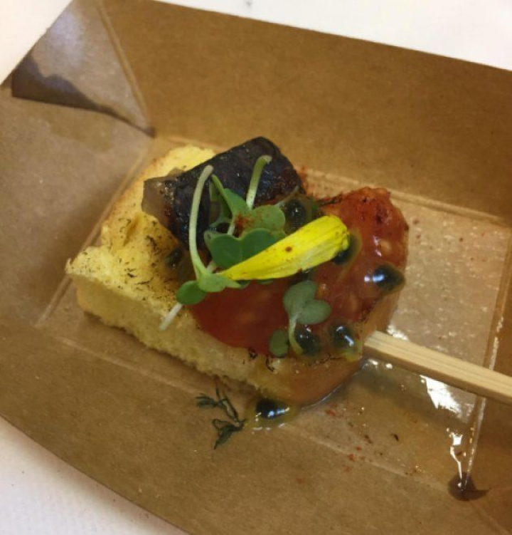 Una vez en el recinto, dos amables señores nos describieron la vida y obra de los vinos de Rueda, fue sin duda, lo más salvable de la velada. Mientras atendíamos a las explicaciones, un ejército de camareros trajo el primer plato, que llevaba sal de gusano. "Vamos a ir de menos a más", dijo el amable chef que había elaborado la degustación.