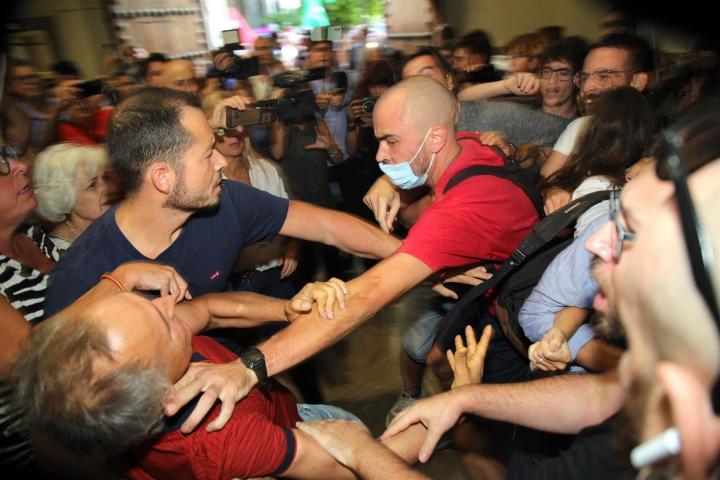 En dos ocasiones los momentos de tensión que se han vivido han obligado a la intervención de agentes de la Policía Nacional que custodiaban el acceso en la Plaza de Derecho ante la presencia de hasta un millar de personas en el entorno entre partidarios y detractores, que han coreado cánticos como ‘fuera fascismo de la universidad’ o ‘no pasarán’.