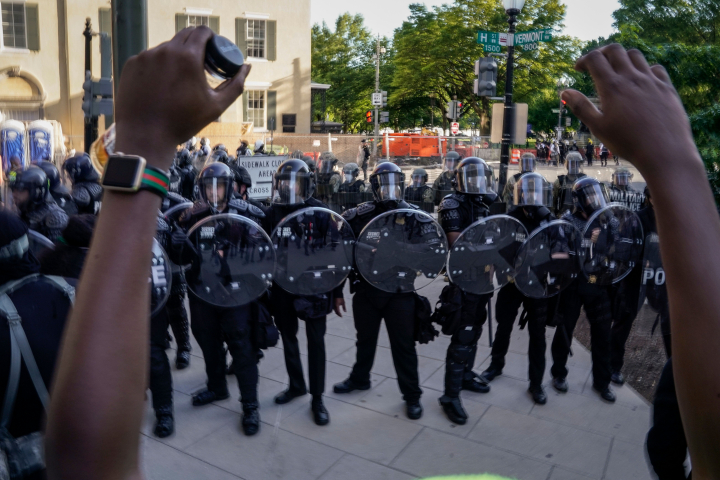 Minutos antes del toque de queda, que se inició a las 19.00 hora local, la policía dispersaba con pelotas de goma y gases lacrimógenos a los manifestantes congregados junto a la Casa Blanca para que el presidente, Donald Trump, pudiera salir a pie poco después y fotografiarse con una Biblia junto a una iglesia próxima.