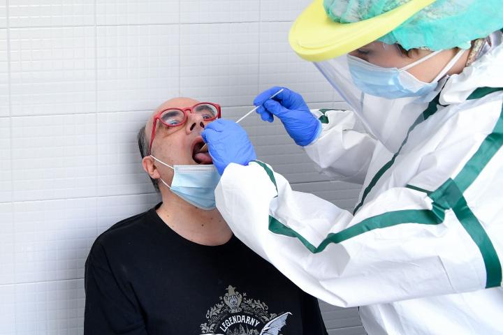 Extraen una muestra a un paciente para realizar una prueba de coronavirus.AFP via Getty Images