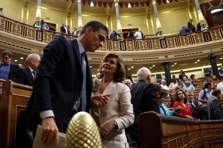 Se mueven las cosas tras dos días enfangados. La vicepresidenta del Gobierno en funciones, Carmen Calvo, ha telefoneado durante la tarde de este martes al secretario de Acción de Gobierno de Podemos, Pablo Echenique, y ambos han quedado en volver a reunirse en cuanto puedan para retomar la negociaciones sobre la investidura del candidato socialista, Pedro Sánchez.