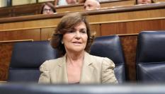 La vicepresidenta del Gobierno en funciones, Carmen Calvo, encabeza la delegación socialista, y al entrar en el edificio donde se celebra el encuentro ha afirmado que alberga “todas” las esperanzas de llegar a un acuerdo con la formación morada.