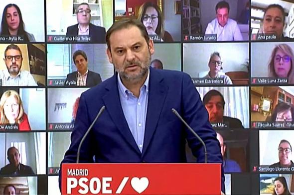 “Hemos visto como en Murcia, en la plaza pública, como si se tratara de una venta de esclavos, se gestó una compra de tres tránsfugas”, ha criticado este sábado Ábalos durante su intervención en un encuentro telemático con alcaldes socialistas.
