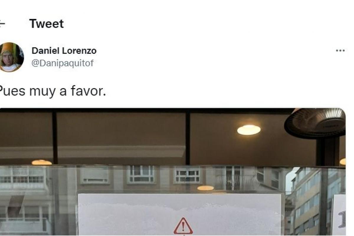 El usuario de Twitter Daniel Lorenzo ha publicado una fotografía en la que aparece como protagonista el cartel que una cafetería había colgado en su cristalera.