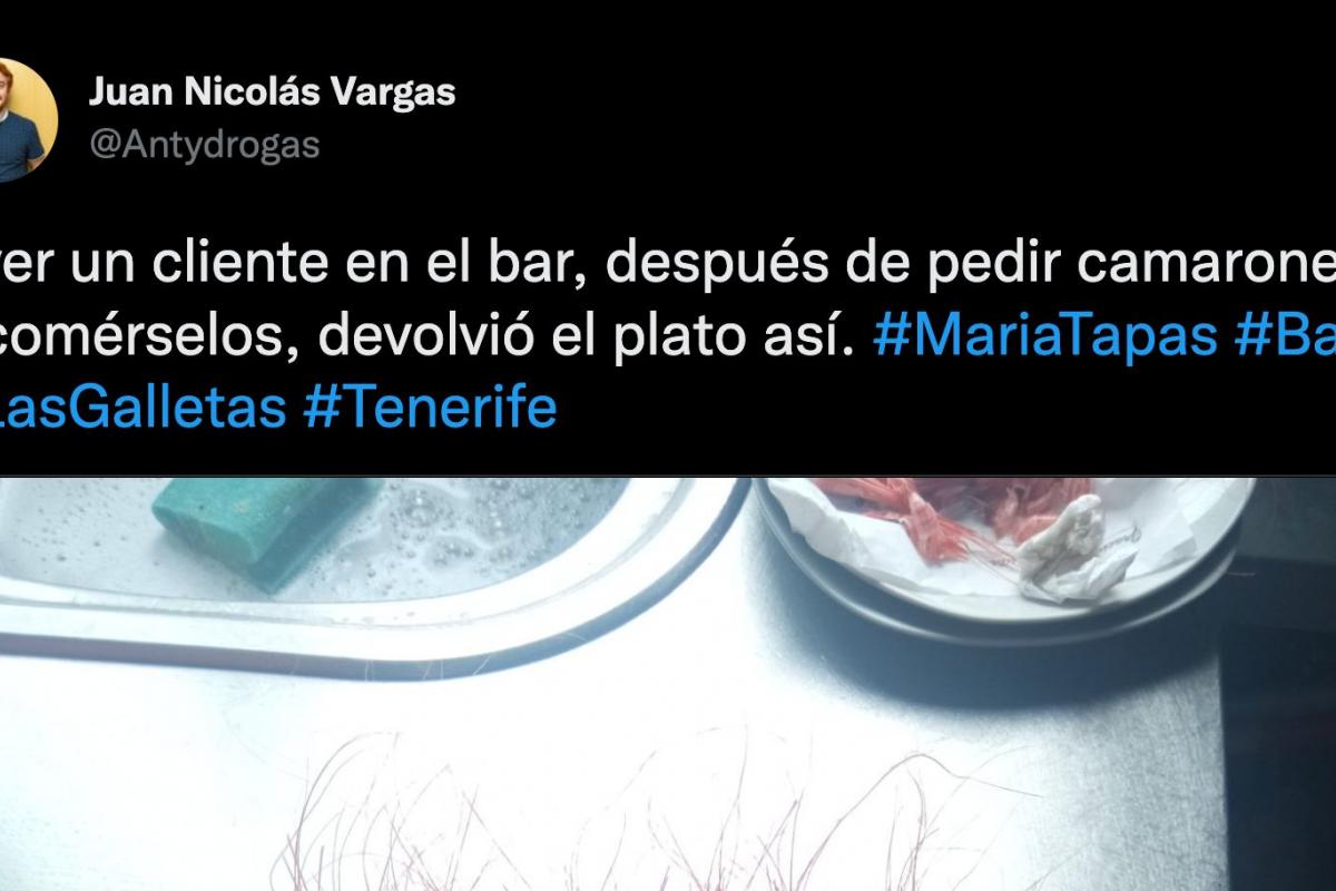 Uno de los últimos tuits en arrasar ha sido el que ha publicado este lunes la cuenta @Antydrogas desde Las Galletas, en Tenerife. “Ayer un cliente en el bar, después de pedir camarones y comérselos, devolvió el plato así”, ha escrito el usuario.