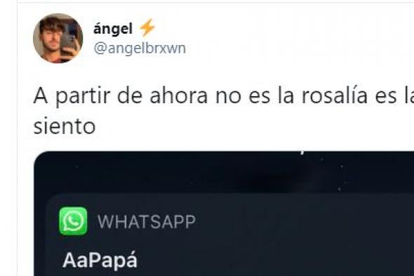 El joven, que ha publicado el pantallazo con el WhatsApp de su padre, y ha bromeado sobre cómo va a llamar ahora a la cantante: “A partir de ahora no es la Rosalía es la fiscalía ya lo siento”.