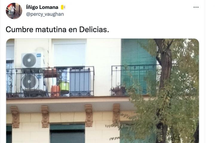 “Cumbre matutina en delicias”, escribió el usuario Íñigo Lomana, que fue el encargado de publicar la imagen en la red social del pajarito.