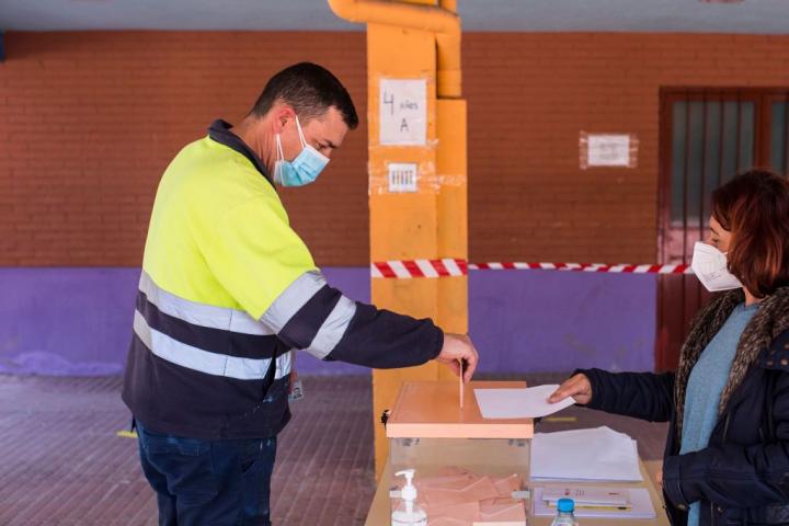 Un hombre vota este martes en el Colegio Público Asturias de Puente de Vallecas, en Madrid.Europa Press via Getty Images