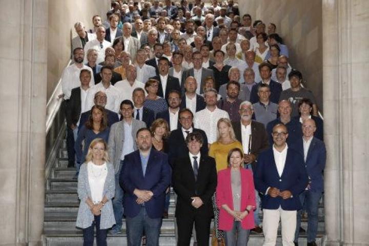 Medio millar de alcaldes de diferentes localidades catalanas han expresado su "compromiso" con el referéndum anunciado para el próximo 1 de octubre en un acto celebrado hoy en el paraninfo de la Universidad de Barcelona.