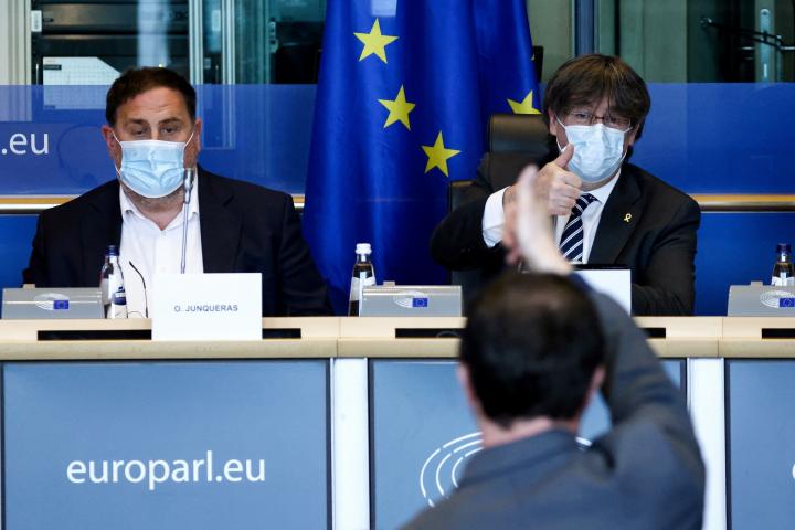 El eurodiputado y expresident de la Generalitat, Carles Puigdemont, y el exvicepresident y líder de ERC, Oriol Junqueras, han anunciado este martes en el Parlamento Europeo acciones legales en España, Francia, Suiza, Luxemburgo, Alemania por el caso del espionaje a dirigentes independentistas destapado en una investigación de la plataforma de ciberseguridad CitizenLab.