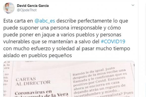 David García, el jefe de comunicación del hospital Gregorio Marañón de Madrid, ha compartido en su perfil de Twitter la carta al director que Javier Vega, un ciudadano de Cáceres, ha remitido al diario ABC.