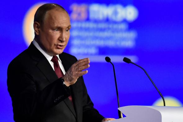 El discurso en el Foro Económico Internacional de San Petersburgo. se tuvo que retrasar más de una hora debido a un ciberataque masivo.