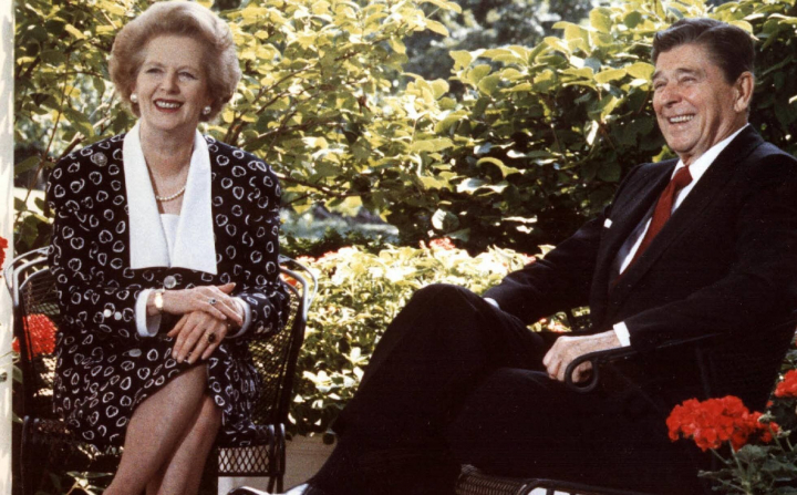 Al frente de ese nuevo ataque se pusieron el expresidente norteamericano Ronald Reagan y la exprimera ministra del Reino Unido Margaret Thatcher. “La batalla de Thacher y Reagan fue la mas importante del siglo XX”, opina Esperanza Aguirre, acérrima seguidora de la británica, a la que su partido honró con una plaza en Madrid cuando Ana Botella era alcaldesa, en 2014. Simancas opina que ambos dirigentes anglosajones ascendieron una vez se neutralizó al comunismo para romper el consenso de posguerra. “Una parte de la derecha, en España y en toda Europa, reacciona con frustración y resistencia ante el predominio creciente de los principios y planteamientos políticos de la izquierda. El llamado consenso de posguerra, que abrió paso al mayor avance civilizatorio de la historia durante la segunda mitad del siglo XX, se fundamentó en las ideas socialdemócratas: mercado regulado, derechos para los trabajadores, progresividad fiscal, Estado de Bienestar... Las fuerzas conservadoras asumieron los programas progresistas, quizás, ante el temor al avance soviético. Una vez caído el Muro de Berlín y conjurado el riesgo bolchevique, las derechas recuperaron el prontuario liberal con cierto éxito electoral de la mano de Thatcher, Reagan y compañía”, ahonda Simancas.