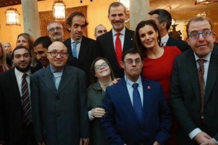 El rey Felipe y la reina Letizia se han fotografiado este jueves en el palacio de El Pardo con el equipo de Campeones, nominada al Goya a Mejor película y a otras 10 categorías. El Twitter oficial de la Casa Real ha publicado tres fotos en las que se ve a los reyes saludando al equipo y posando con ellos.