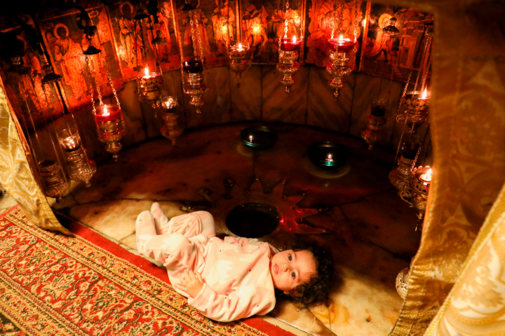 Como se narra en el evangelio según San Mateo, “José, que pertenecía a la familia de David, salió de Nazaret y se dirigió a Belén de Judea, la ciudad de David, para inscribirse con María, su esposa, que estaba embarazada. Mientras se encontraban en Belén, le llegó el tiempo de ser madre y María dio a luz a su hijo primogénito, lo envolvió en pañales y lo acostó en un pesebre, porque no había lugar para ellos en el albergue”. Por eso, el hijo de Dios nació en el lugar más pobre sobre la Tierra (hoy en Cisjordania, Palestina) como ejemplo para que los cristianos adoptasen la humildad como una de sus máximas. Lugar, día y año han sido acuñados como tradición a lo largo de los años, pero en realidad no hay base histórica para afirmar ni una cosa ni la contraria.