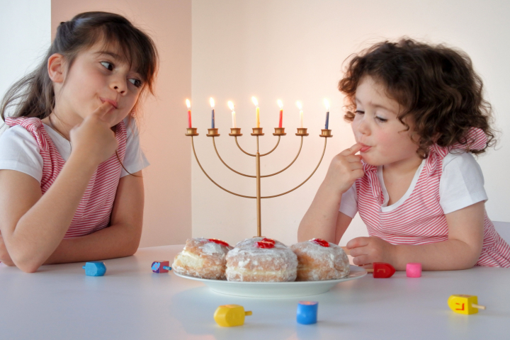Cuando se enciende cada vela, los judíos piden que ocurran milagros como aquel y se leen textos y salmos relacionados con la creación. En ese sentido, es igualmente una fiesta de renacimiento. Es típico que se juegue con monedas de chocolate y con un trompo llamado dreidel, con letras pintadas que son acrónimo de “Nes gadol haia sham”, “un gran milagro ocurrió allí”. Para comer, muchas cosas en aceite, fritas: pasteles de patata, natillas... y sobre todo, sufganiot, un dulce de masa frita relleno o espolvoreado de azúcar, mermelada o chocolate, como un donut relleno.