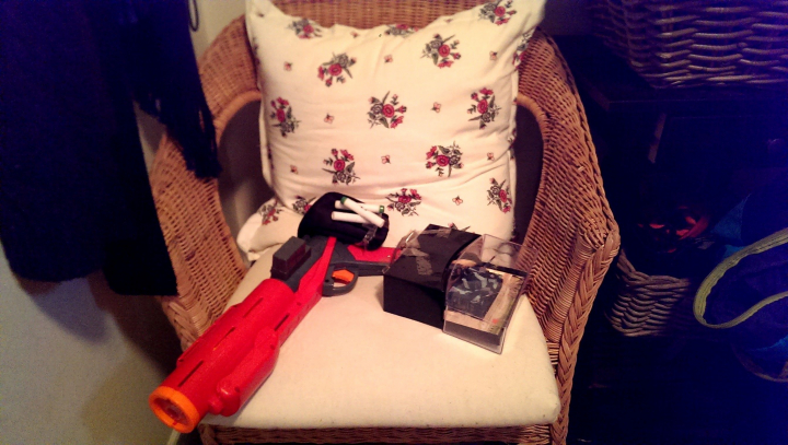 Vivir con un niño es algo que nunca antes había hecho, así que cada día descubro cosas nuevas. Como cuando juré que nunca le compraría una pistola de juguete (porque odio las pistolas) y recibió una por su cumpleaños (no se la regalamos sus padres), nos reímos juntos... y nos apuntó a la cabeza. Fue un momento memorable. Ahora es su juguete favorito. A los niños les gustan las pistolas y no hay nada que podamos hacer para evitarlo. Al fin y al cabo me di cuenta de que solo es un juguete.