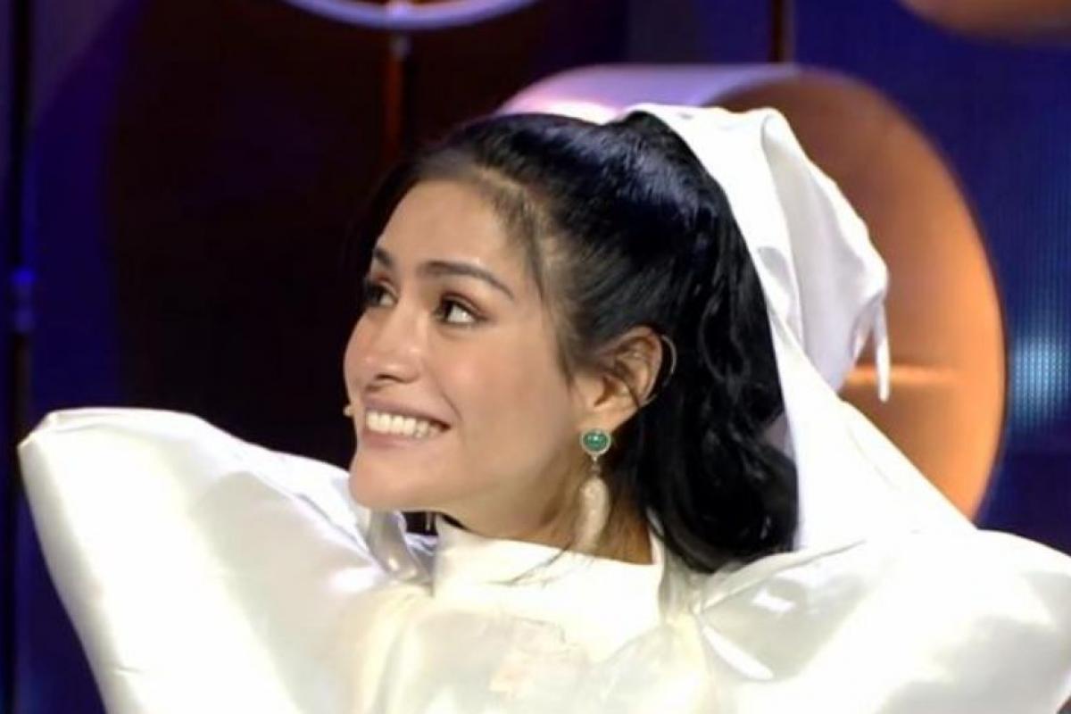 La Princesa Inca, como la han bautizado sus seguidores, ha aparecido en el plató de Telecinco vestida de una curiosa forma: un disfraz de algo parecido a un gusano.