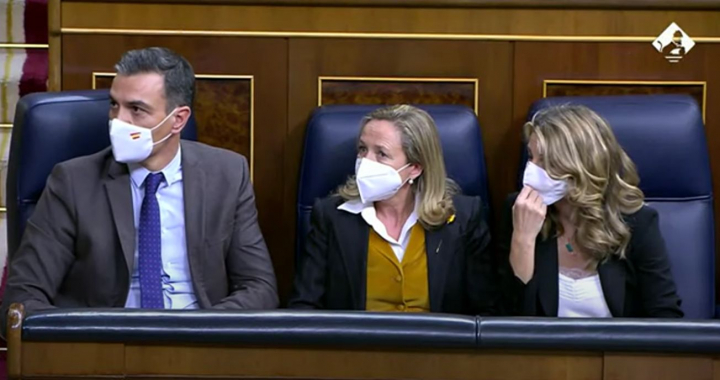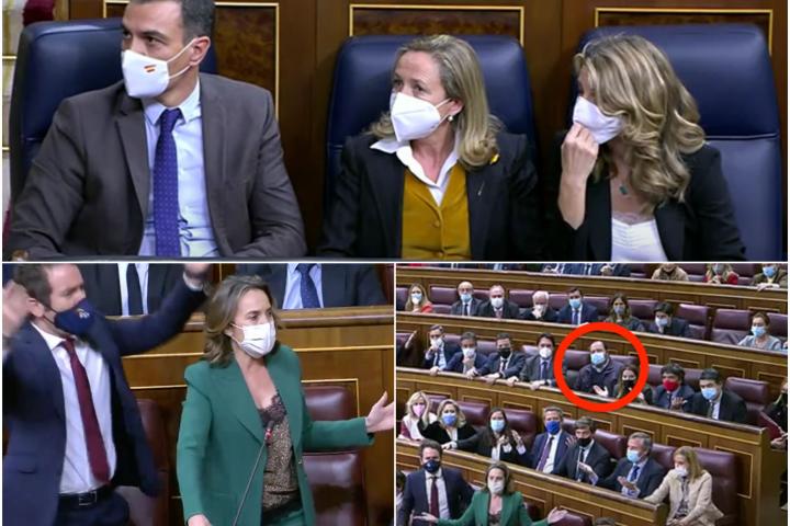 La bancada de la derecha estalla en júbilo. Las caras en el Gobierno son de auténtico pasmo. Sánchez mira a sus lados. Calviño no da crédito. Díaz pregunta qué está pasando. El presidente hace un gesto con las manos pidiendo tranquilidad.