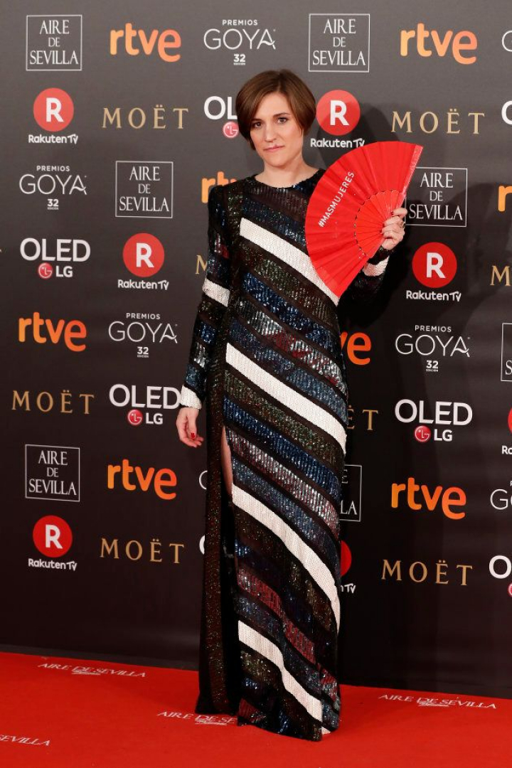 La directora y actriz Leticia Dolera no posó con el abanico en la alfombra roja, pero defendió la iniciativa. "Queremos visibilizar y reivindicar la necesidad de tener más mujeres en guión, en dirección, en dirección de fotografía y en producción", aseguró.