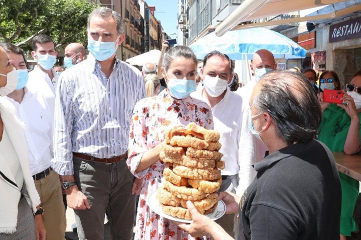 Como en cada visita de este tour, Felipe VI y Letizia, además de recibir el cariño de los vecinos fueron agasajados con las mejores viandas del lugar y en el caso de Soria no podían faltar los tradicionales torreznos. Fue Letizia la que se acercó hasta uno de los restauradores que llevaba una bandeja de crujientes torreznos para interesarse por este manjar y, al parecer, decidió encargarlos para llevar.