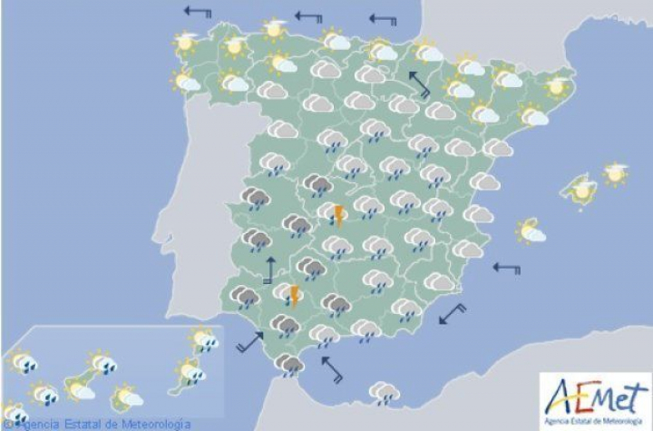 Una de las borrascas dejará este viernes abundantes lluvias en el sur peninsular que se extenderán hacia el norte, para afectar este sábado a casi toda España, sobre todo en zonas del interior, según ha adelantado a Efe Ana Casals, portavoz de la Agencia Estatal de Meteorología (Aemet).