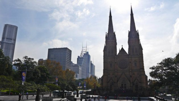 La ruta prosigue hacia el edificio del Ayuntamiento de Sídney, ubicado en una concurrida intersección en las calles Park y York.