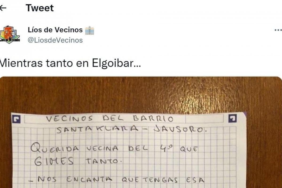 Algo que ha hecho un vecino de Elgóibar, en Gipuzkoa, colocando una nota en el portal de su edificio en el que ha pedido a una de sus vecinas que controlara más los gritos que hacía y que estaban molestando a varias personas.