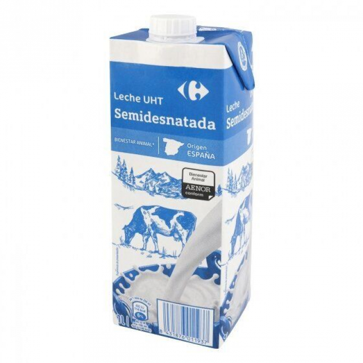 La cadena de supermercados Carrefour trabaja para su leche de marca propia con la empresa Leche de Galicia S.L., una sociedad integrada dentro del grupo Lactalis Iberia. Se puede comprobar si se mira el número de registro sanitario en el envase (15.01710/LU). Un litro de leche semidesnatada cuesta 0,58 euros.