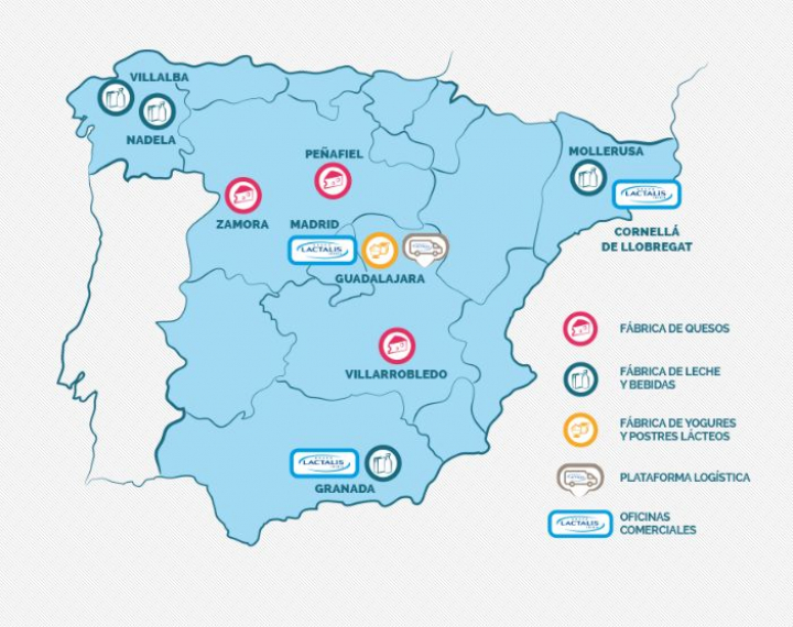 Aparte de la de Villalba, Lactalis Puleva tiene actualmente otras tres fábricas de leche en España, en Nadela (Lugo), Mollerussa (Lleida) y Granada. En 2016 cerró la histórica fábrica de Lauki, situada en Valladolid.