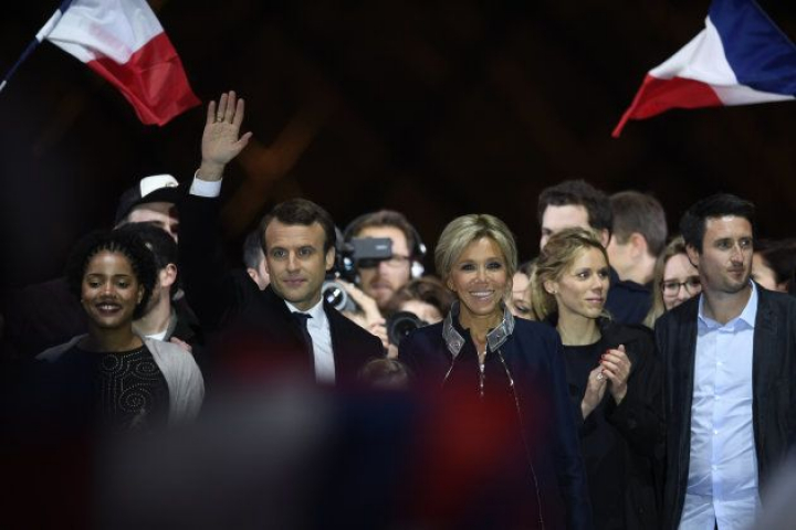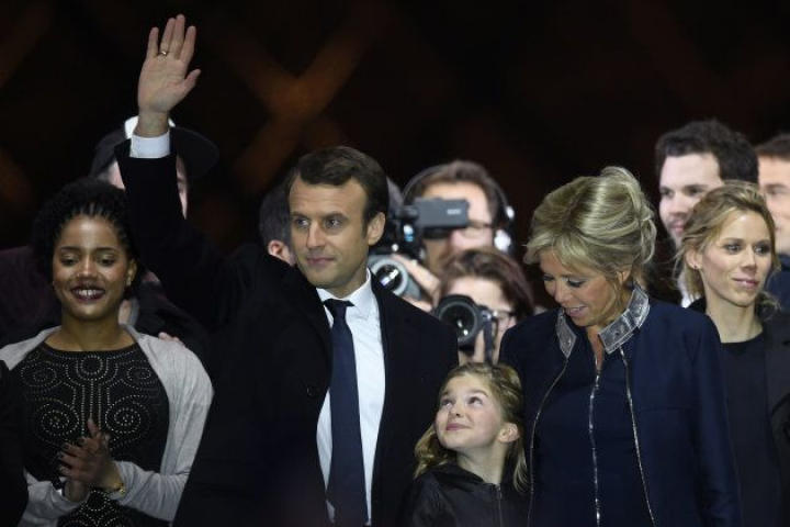 Brigitte Macron y sus hijos estuvieron presentes tras conocerse los resultados de las elecciones en Francia.