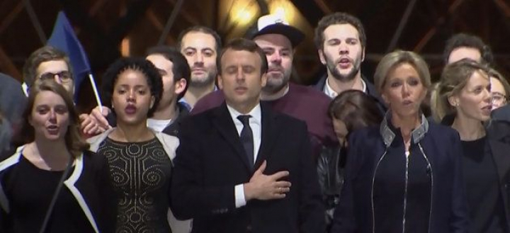 Emmanuel Macron llegó poco después de las 22:30 a la explanada del museo del Louvre de París, donde le esperaban miles de simpatizantes. El presidente recién elegido frente a su rival, Marine Le Pen, dio su segundo discurso de victoria antes de que llegaran su esposa y demás familiares a escena.