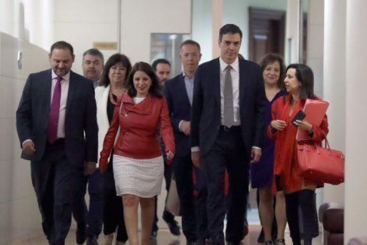 Sánchez debe primero jurar su cargo este sábado ante el rey y luego se pondrá a elegir su Ejecutivo, uno de los secretos mejor guardados del país. A lo más cerca que llegó fue esa especie de 'Gobierno en la sombra' que presentó de cara a las elecciones de junio de 2016, en el que aparecían nombres como Meritxell Batet, Patxi López, Ángel Gabilondo, Teresa Ribera, Jordi Sevilla, Rafael Bengoa, Sami Naïr, Núria Parlón, Gregorio Cámara, Carmen Montón y Ángel Ubide.