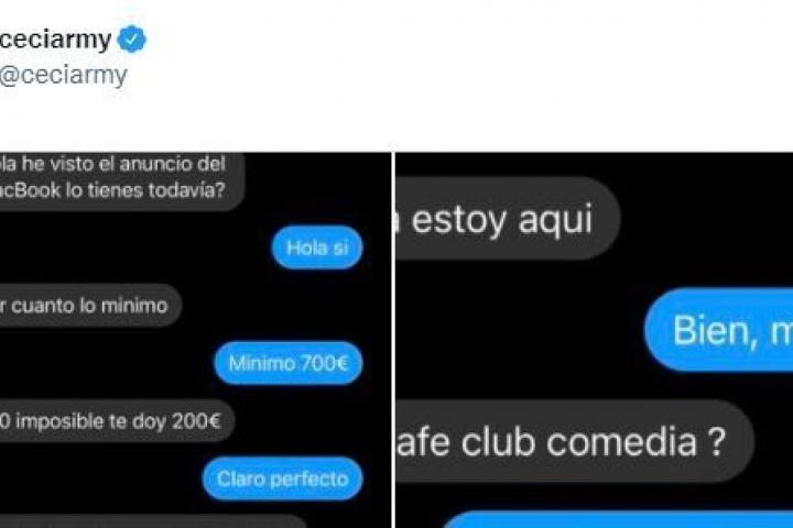 La cuenta de Twitter @ceciarmy publicó una conversación de lo más surrealista entre un vendedor de un ordenador -concretamente un MacBook- y el interesado en comprarlo. Con solo dos imágenes el tuit alcanza ya los 28.000 me gusta y casi 3.000 RT.