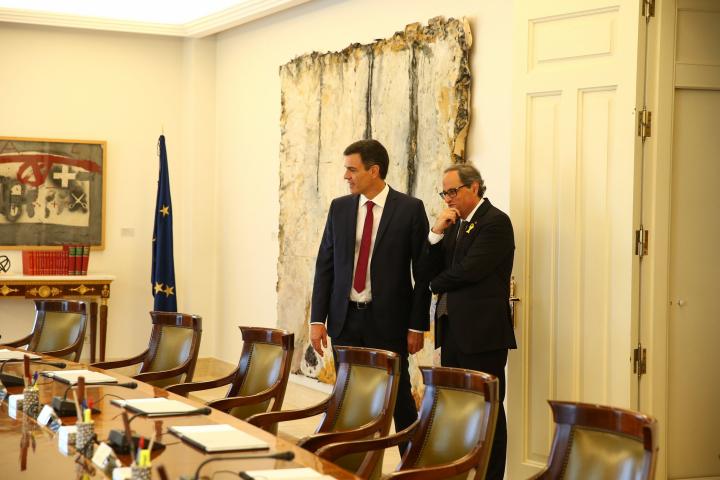 Una de las dudas es si Sánchez y Torra acordarán la fecha para que eche a andar la mesa de diálogo. Vistas las posiciones hasta ahora, parece poco probable y podría ser pactada por el PSOE y ERC, que fueron los que alcanzaron el acuerdo ese órgano dentro de las negociaciones para la investidura de Pedro Sánchez.