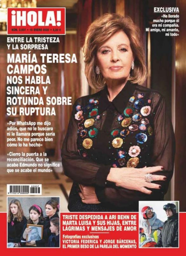 Desde entonces, todo ha sido dantesco: Terelu Campos leyendo en Viva la vida, entre lágrimas, un comunicado en el que su madre anunciaba la ruptura; Carmen Borrego saliendo del plató, llorando, durante la lectura; y la parrilla de Telecinco más a tope que nunca con Las Campos. Y mientras, Bigote sin dar señales de vida. Sin olvidar la portada de ¡Hola! que protagonizó María Teresa: “Que se acabe Edmundo no significa que se acabe el mundo”. España no vivía algo igual desde la emisión de la telenovela Los ricos también lloran.