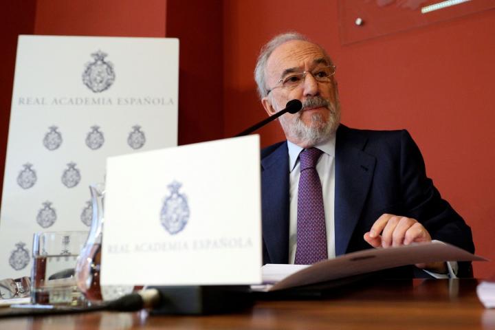 El director de la RAE, Santiago Muñoz Machado, explica en rueda de prensa, este lunes en Madrid, el contenido del informe sobre el lenguaje inclusivo en la Constitución que aprobó el pleno de la institución y que ha sido remitido al Gobierno.EFE