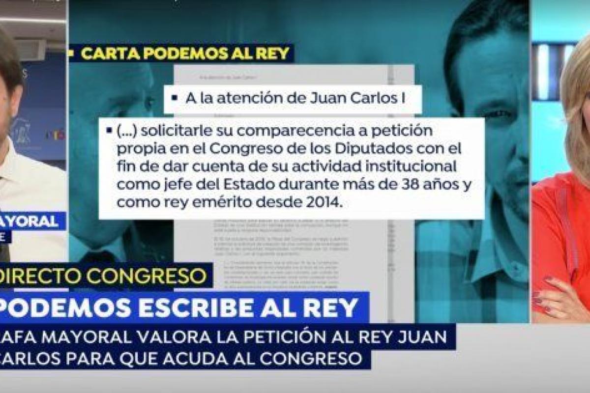 Mayoral adujo entonces que el problema era hacer eso en un dúplex con un "problema de retorno y de diferencias de tiempo" que dificultaba su intervención. Después de eso, el dirigente de Podemos continuó con la entrevista y la discusión finalmente no pasó a mayores.