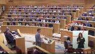 En segunda comparecencia, en respuesta al líder de la oposición, ha vivido una curiosa escena con el senador popular Rafael Hernando, sentado justo detrás del atril ocupando su puesto como secretario tercero de la mesa del Senado.