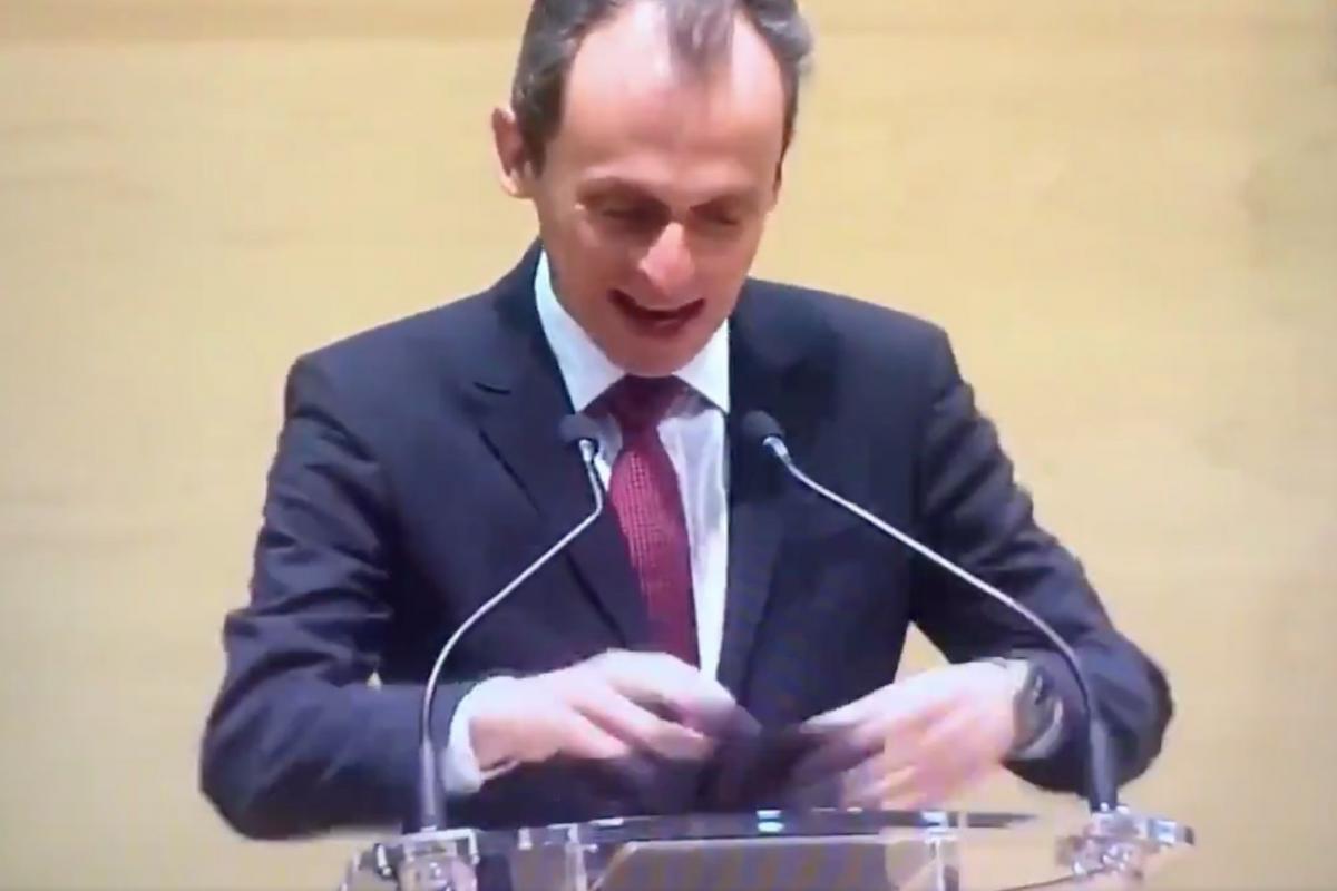 Él mismo se lo tomó con humor y arrancó las risas de los presentes. ”¡Ya se me ha liado el iPad!”, expresó. ”¡Dificilísimo!”, remató.