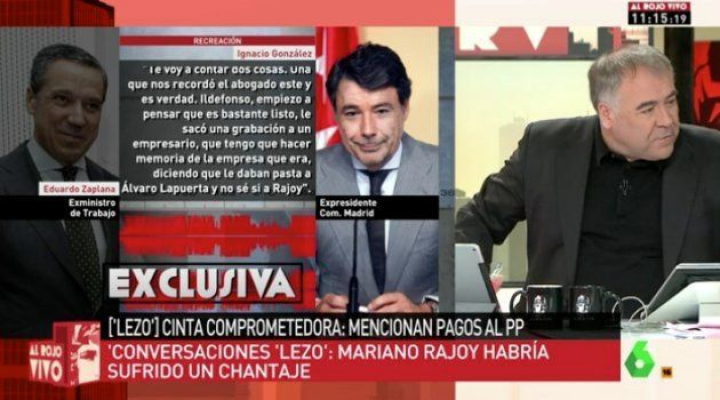 En las grabaciones, González conversa con Eduardo Zaplana, quien fuera ministro de Trabajo con José María Aznar, y le cuenta que Ildefonso de Miguel, exresponsable del Canal de Isabel II y hombre de confianza del expresidente de la Comunidad de Madrid, "sacó una grabación a un empresario" en la que decía "que le daba pasta a Álvaro Lapuerta", quien fuera tesorero del PP. "Y no sé si a Rajoy", añadía González.