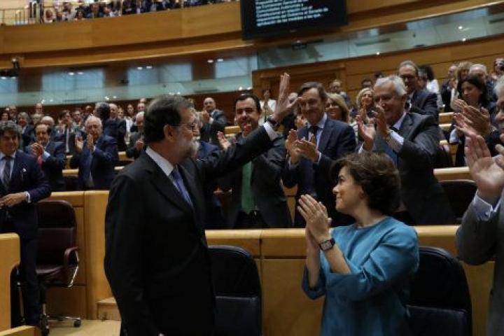 Rajoy ha abierto el debate en la Cámara Alta que desembocará en la aprobación definitiva de las medidas acordadas por el Consejo de Ministros extraordinario del pasado sábado, que incluyen el cese de Carles Puigdemont y todo su Govern y la convocatoria de elecciones en los próximos seis meses, entre otros aspectos.