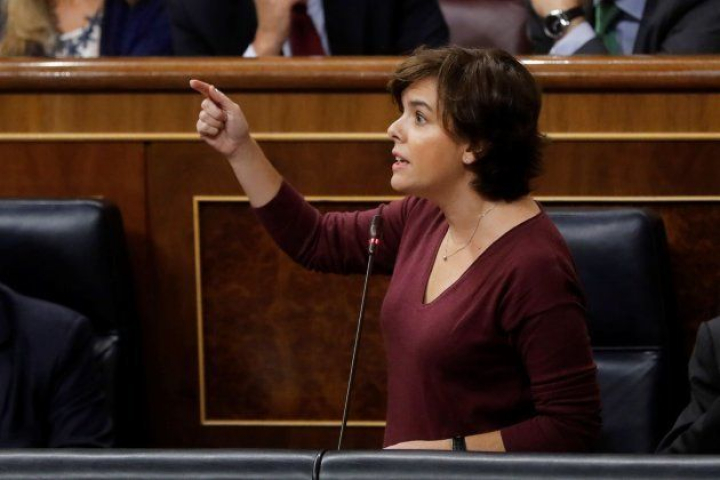 La vicepresidenta le ha contestado que el requerimiento a Puigdemont es "firme" y si mañana a las diez no explica si declaró o no la independencia el pasado 10 de septiembre, será el presidente de la Generalitat quien "provocará" la aplicación del 155.