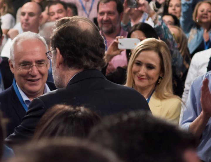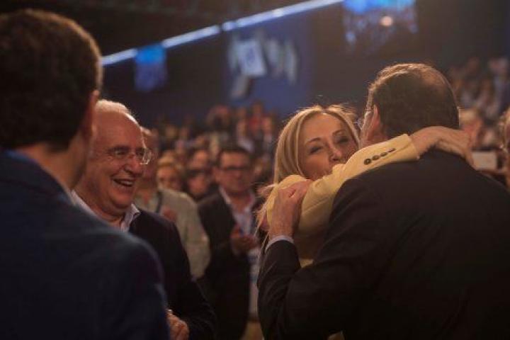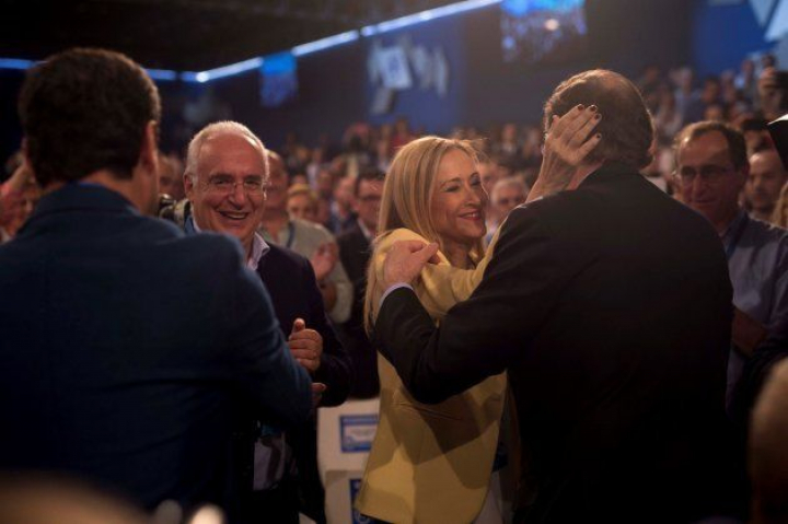 Mientras se dirigía a su asiento, Rajoy ha ido saludando a otros dirigentes de su partido que ya se encontraban en el interior del plenario de la convención, entre ellos Cifuentes, y a quien ha besado.