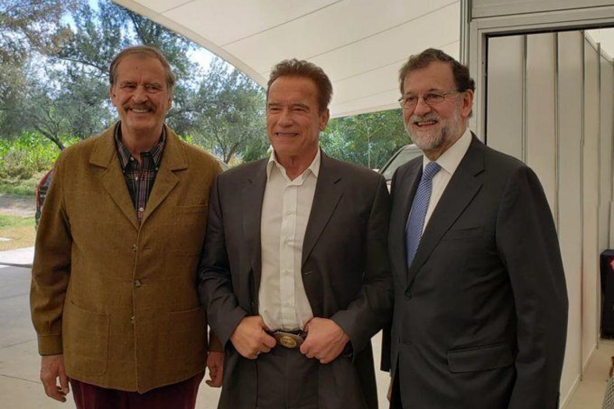 Y no nos referimos a un nuevo abrazo entre Pedro Sánchez y Pablo Iglesias, sino al posado de Mariano Rajoy, expresidente del Gobierno, con otro expresidente, el mexicano Vicente Fox, y una leyenda del cine de acción: Arnold Schwarzenegger.