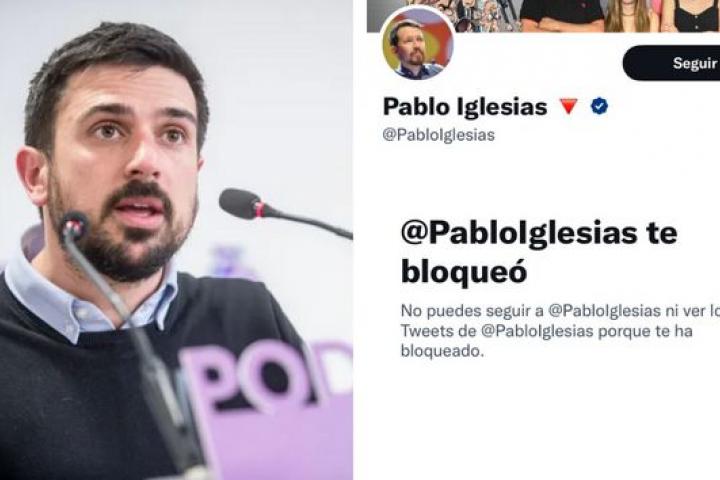 Ramón Espinar ha compartido en su perfil de Twitter que el fundador de Podemos, Pablo Iglesias, le ha bloqueado en la red social del pájaro azul. El exsenador y exdiputado en la Asamblea de Madrid por la formación morada ha lamentado la decisión del exvicepresidente y le ha deseado “suerte” de aquella manera.