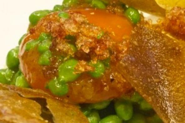 El gofre de hierbas anisadas con huevo de codorniz y caviar es una reinvención de ese lujo al alcance de pocos, casi un sueño ostentoso, que es el huevo frito con caviar. Simplemente perfecto sin nada más, aquí es mejorado por esa pasta entre gofre y blini que se esponja para recibir el oro del huevo y las perlas salobres del caviar.
