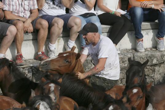 Así y con rigurosa puntualidad, a las siete de la tarde comenzó el espectáculo con la entrada de las 'bestas' al curro de O Castelo, un recinto atestado por un público entregado que animaba a los niños y adolescentes que se encargaron de separar a los 'bichos', nombre con el que denominan a los potros; y que son los futuros aloitadores, de los animales adultos.